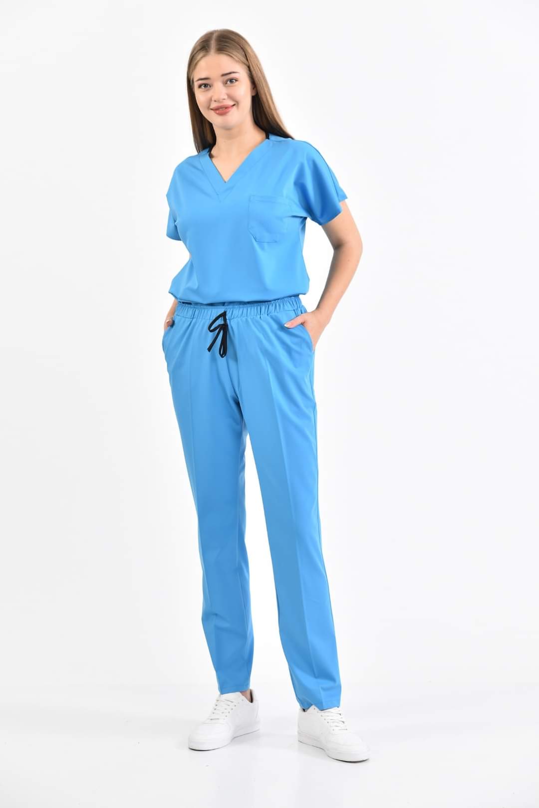 Ținuta medicală Flexicool este compusă din două piese, din bluză și pantalon.
